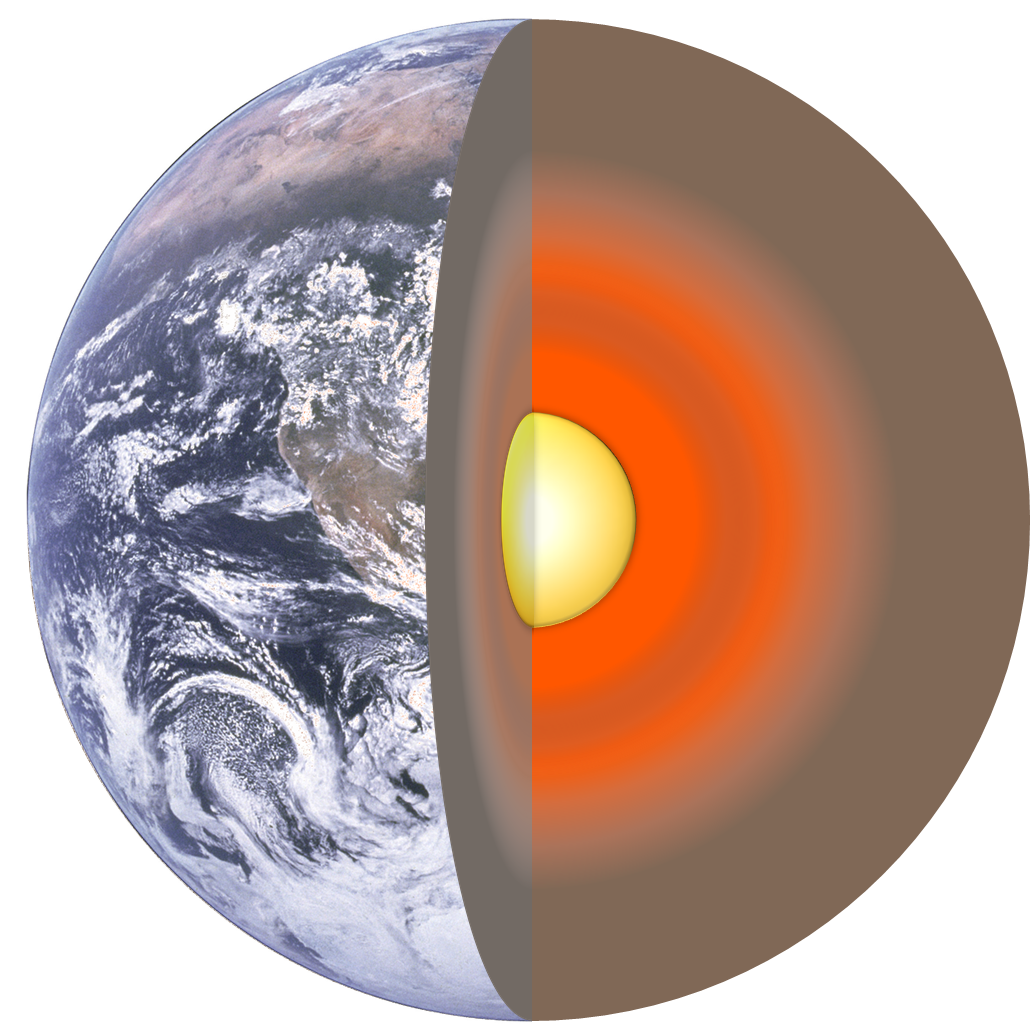 원시 지구는 한참 동안 식지 않았었습니다. 지구 내부를 보면 지각, 멘틀, 내핵과 외핵이 있습니다.