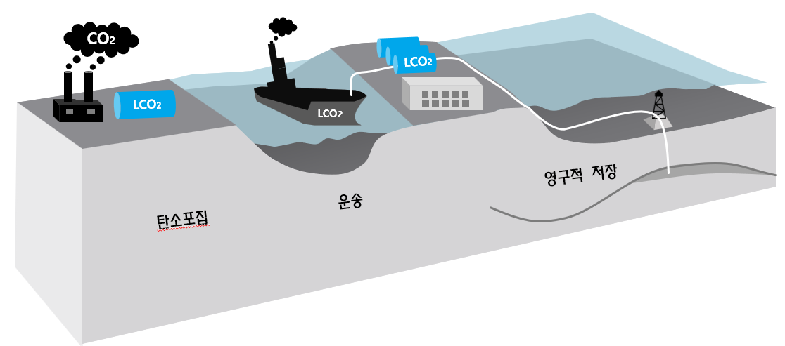 이렇게 포집된 이산화탄소를 압축하여 땅이나 바다 밑에 안전하게 보관하는 기술로 CCS가 주목받고 있습니다.